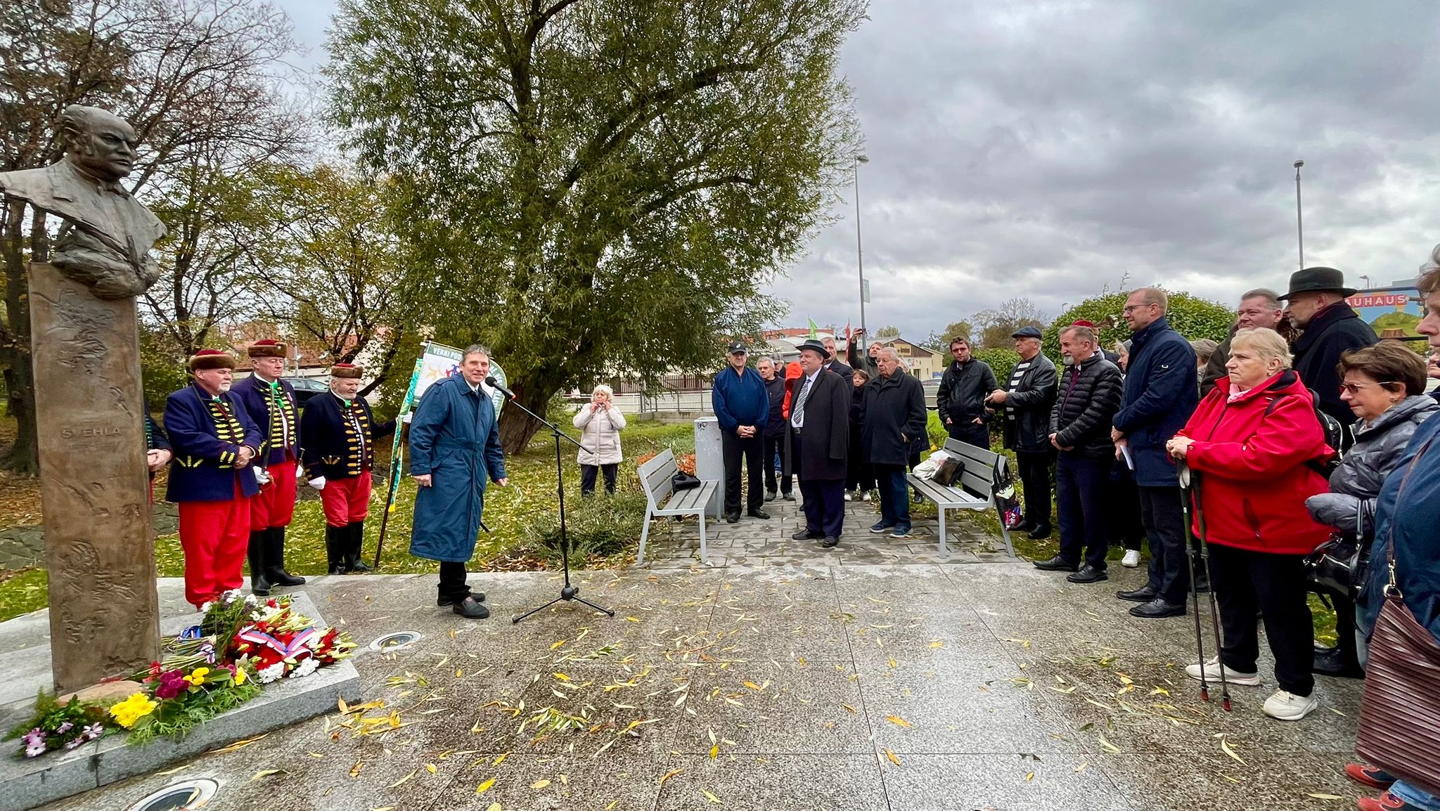 Po přivítání předsedou SAŠ Pavlem Černým a kladením květinových darů a věnců následovalo vystoupení Milana Wenzla, náměstka ministra zemědělství Miroslava Skřivánka, ředitele Knihovny Antonína Švehly Jana Humla, předsedkyně Demokratického klubu Jitky Novákové, příbuzného divizního generála Čeňka Haužvice, zakladatele Vojenské zpravodajské služby Československa, Svatopluka Haugwitze a na závěr duchovní promluvu Josefa Hejnice z Křesťanského společenství Hostivař.